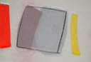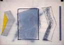 Die Arbeiten haben das Format A3, auf einem Trägerpapier ist eine farbige Form angegeben, auf einem darüberligenden Transparentpapier befinden sich weitere korresponierende Farb- und Formelemente, das darunter liegende wird dadurch abgeschwächt. So vier Mal. Man kann die verschiedenen Transparentpapierschichten miteinander austauschen, so dass immer neue Wirkungen entstehen. Schichten der Erinnerung. |