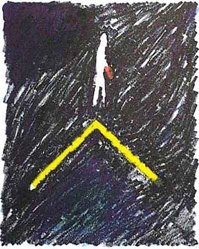 2000, übern Berg, 5-farb Litho, 10 x 8 cm