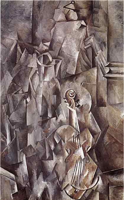 Georges Braque, Stillleben mit Violine und Krug, 1910, Öl auf Leinwand, 117 × 73 cm