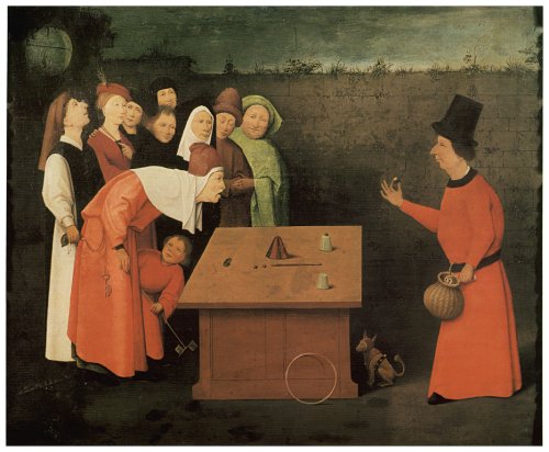 Das Bild von H. Bosch ist eine O''''-Aussage. Ein kultureller Kontext von Gaukler und Zauberkünstler wird gezeigt, und das Publikum, welches diesem Spektakel ahnungslos gegenübersteht. Es ist auf diese Weise auch ein Abbild der gesellschaftlichen Verhältnisse, welche das dumme Volk dem Gelehrten, und sei es auch ein Scharlatan, gegenüberstellt. So kommt es in diesem Bild zu einer subtilen Affirmation der Machthierarchie im Staat. |