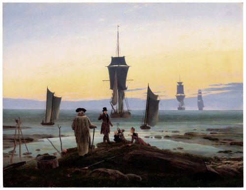Dieses Bild zeigt auf der 'Oberfläche' die Rückkehr bzw. auch die Ausfahrt von Schiffen. Es ist gleichzeitig eine Allegorie auf den Hafen des Lebens, die kleinen Schiffe brechen mutig auf ins ungewisse Abenteuer des Meeres, die großen kommen mit reicher Ware wieder zurück. Und ganz weit am Horizont verschwindet ein Schiff hinter der Horizontlinie, dort wo es in merkwürdiger Weise (perspektivisch ganz falsch) in der Weite zu verschwinden scheint. Hier hat der Tod das Wort, der das Alter heimholt. Eine O''''-Aussage ist dieses Bild auf Grund der Tatsache, dass auf dem Hintergrund tiefster Religiosität von Friedrich dieses Bild Sinnbild wird für die Vergänglichkeit des Menschen.