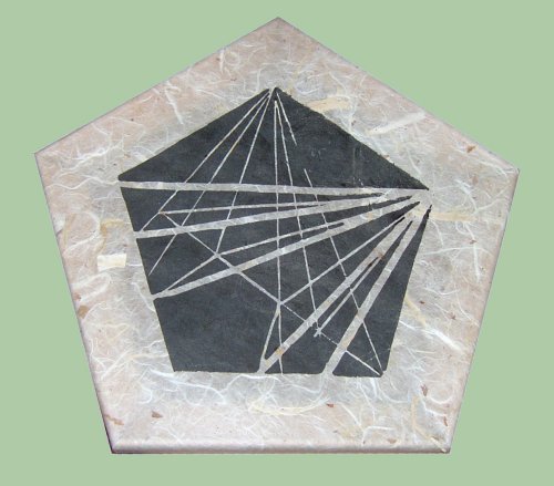 Der holländische Künstler bram van Waardenberg arbeitet seit Jahren mit dem 5-Eck. Das 5-Eck ist eine mathematische Form, die obwohl regelmäßig, dennoch äußerst widerspenstig ist. Es widersetzt sich jeder Reihung, für van Waardenberg ist das 5-Eck Ausdruck der Dialektik zwischen Einordnung und Freiheit der menschlichen Existenz. |