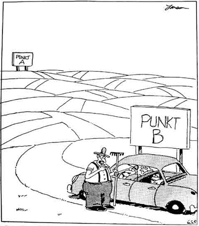 Die meisten Leute fragen nämlich nach dem Weg in die andere Richtung"
