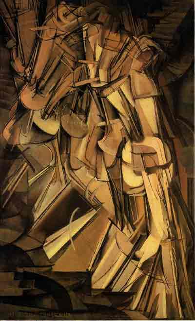 Als Symbolisierung erfahren wir bei dem Bild von Duchamps die Tatsache, dass wir anaphorisch wieder aufgegriffene Formelemente als "Zeit" nachzuempfinden bereit sind. Sprachsymbolische Hinweise gibt es dafür über die Entwicklung des Filmbildes, welches bereits in Ansätzen in der Renaissance entstand, als man Bewegungsabläufe von Tieren versuchte darzustellen (Dürer). Insofern ist ein Nacheinander von Einzelbildern in der kulturellen Tradition bereits längst verankert als Duchamps sein Bild malt. Die Anapher selbst als (ikonisches) Zeitsymbol zu beschreiben fällt etwas schwerer, dazu muss man wohl auch die Gehirnphysiologie mit in Betracht ziehen. Jedes erneute Wiedererkennen eines Elements bringt auch mit sich, dass man dieses schon "vorher" gesehen hat. Dieses "Vorher" bildet sich dann möglicherweise als Erfahrung von Zeit ab, und insbesondere, wenn dieses Element nicht identisch in Erscheinung tritt, sondern in einer modifizierten Weise, wie dies hier auf dem Bild von Duchamps zu sehen ist. Dann ergibt sich die unterschwellige Frage nach dem "wie diesmal?". Dadurch könnte sich dann ein Ablauf ergeben, der abstrahiert auch der eigenen Erfahrung zugänglich zu sein scheint.